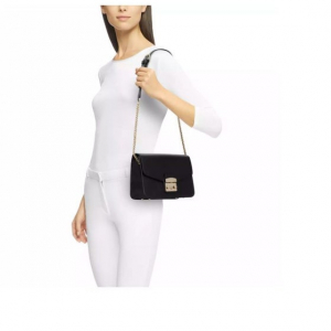 The Furla Metropolis shoulder bag in textured leather stands out for the iconic closure in customized metal. With a compact silhouette; this refined and versatile accessory is equipped with two internal pockets; one of which zipped; and one practical outside pocket with magnet.